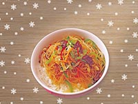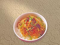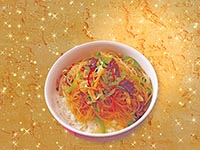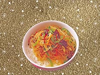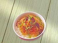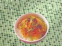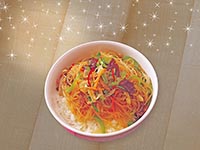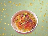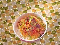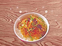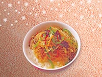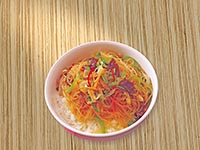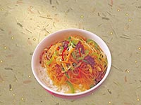 | Rice Topped with Stirfried Glass Noodles with Vegetables and Meat | |