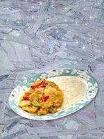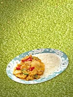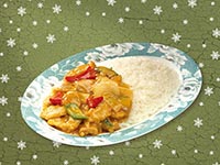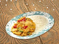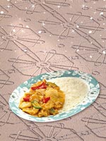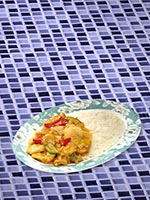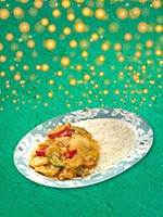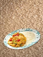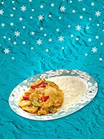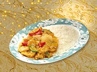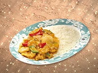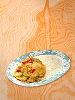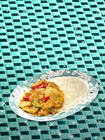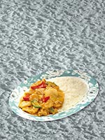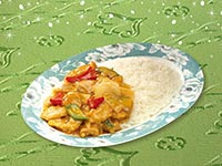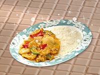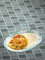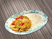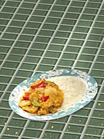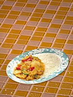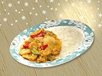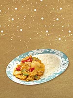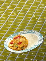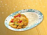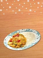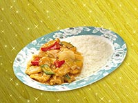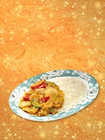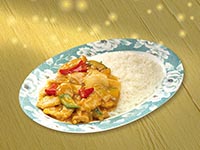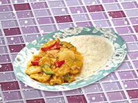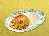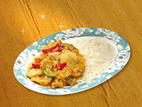 | Rice Topped with Stirfried Meatballs and Vegetables | |
