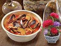 | Seafood Noodles with Vegetables and Seafood in Nickel Silver Pot | |